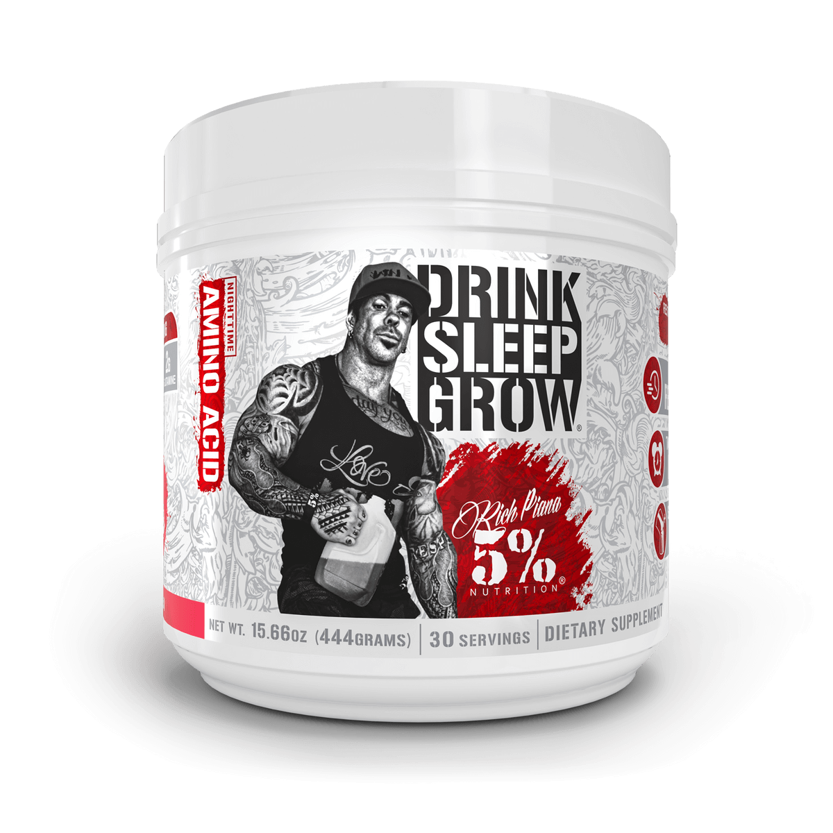Rich Piana 5% Nutrition Drink Sleep Grow® is a combination of EAAs, CEAAs, and BCAAs featuring the revolutionary Active TR™ L-Leucine along with GH Releasers and a special Joint Support Blend that creates a powerful nighttime recovery formula unlike anything else on the market.