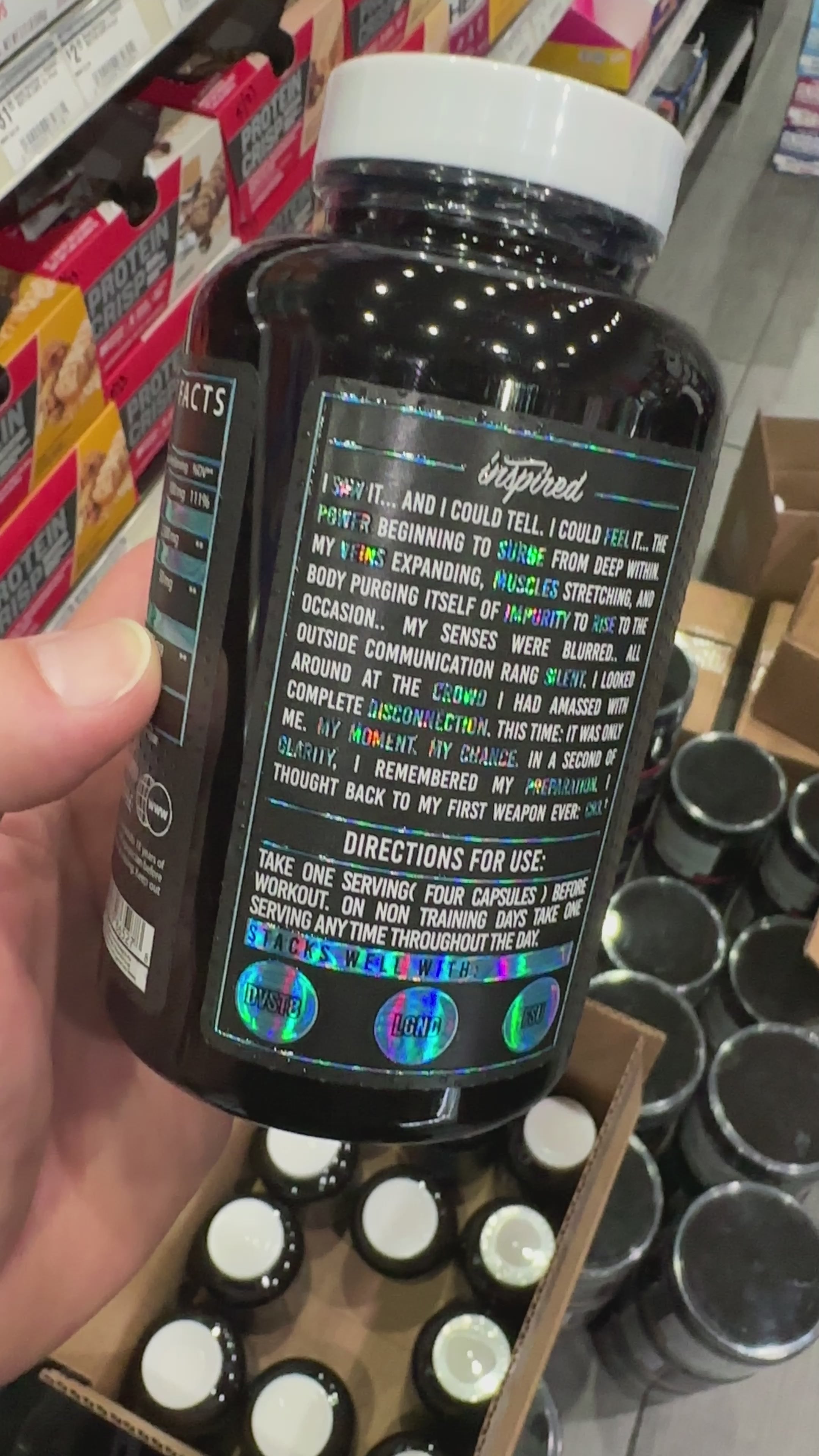 Directions for use: Take one serving (4 capsules) 30-45 minutes prior to exercise. On non-training days, one serving may be split: 2 capsules in the morning and 2 capsules 6-8 hours later.