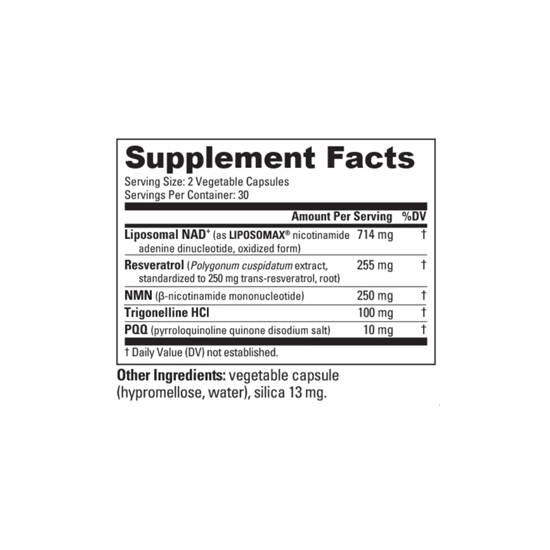 The inclusion of NMN, Resveratrol, Trigonelline HCl, and PQQ provides broad cellular support beyond NAD+ alone, helping reinforce the systems that drive daily performance and long-term wellness. Fully dosed. Fully transparent. No unnecessary ingredients. Just purposeful formulation built for those who expect more from their body now and over time.