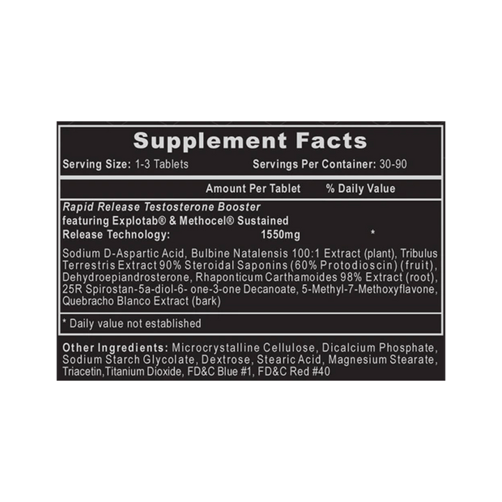 - Contains Bulbine Natalensis Extract, Sodium D-aspartic Acid, Tribulus Terrestris Extract (Protodioscin), Turkesterone, 6-Keto-Diosgenin, and 5-Methyl-7-Methoxyflavone