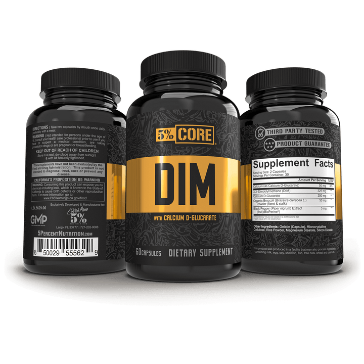 5% Nutrition Core DIM provides an overdosed 325 mg of DIM per serving. That’s not all! There’s calcium d-glucarate, broccoli powder and Bioperine Black Pepper. This is what a great estrogen inhibitor is all about! Core DIM – only from 5% Nutrition!