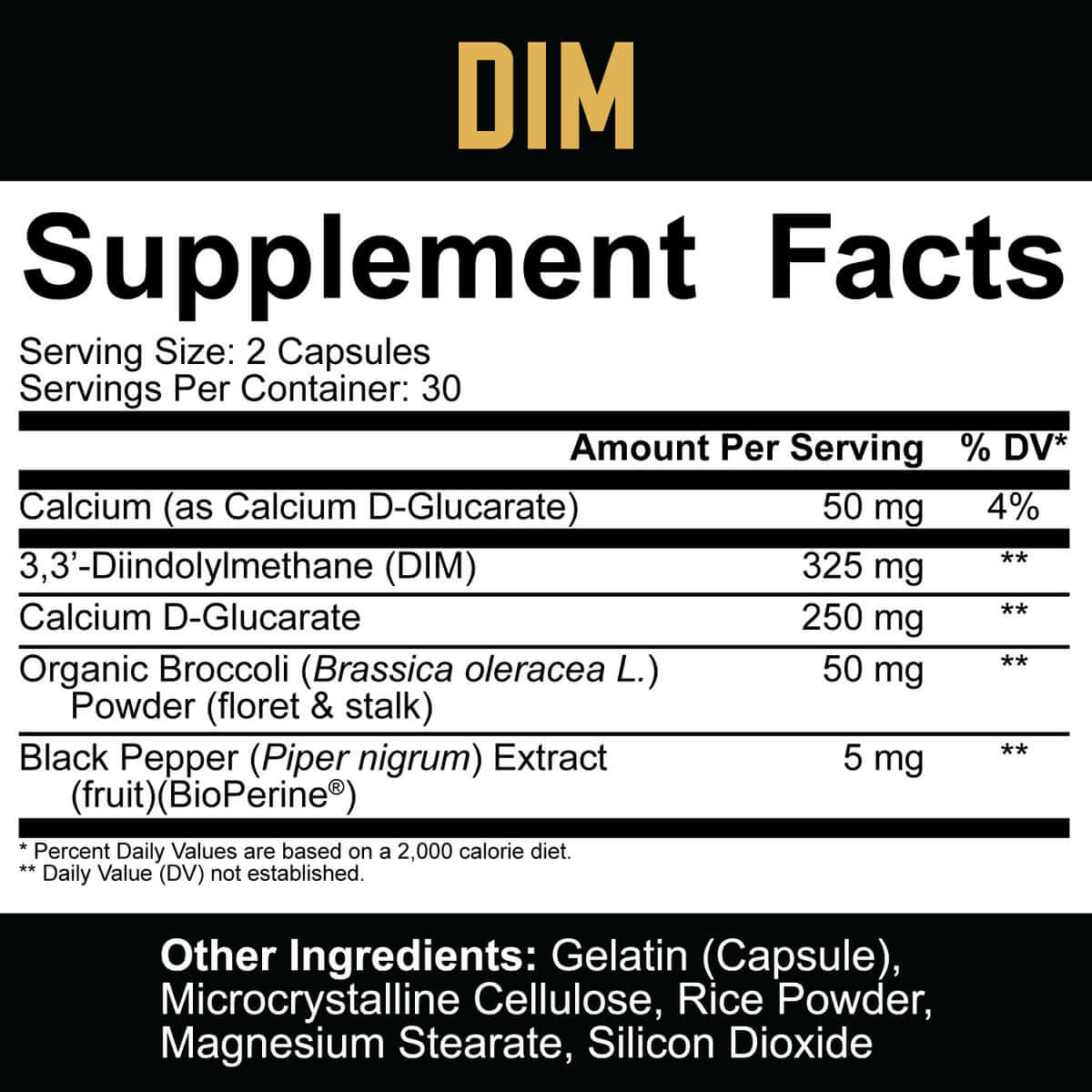 Before we dig into the benefits of DIM, let’s understand that DIM comes from Indole-3-Carbinol. That’s a phytochemical in cruciferous vegetables such as broccoli, kale, Brussel sprouts, and cabbage which are broken down by the body into various molecules; one of those molecules is 3,3’-Diindolylmethane (DIM).
