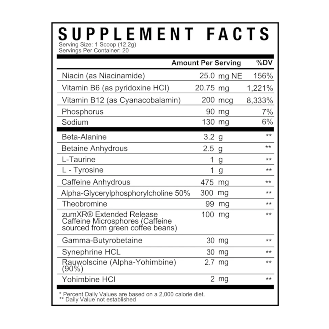 OUR HARDEST HITTING PRE-WORKOUT TO DATE... DBAP IS ONE OF THE HIGHEST STIMULANT-BASED PRE-WORKOUTS ON THE MARKET. IT CONTAINS NEARLY 550 MILLIGRAMS OF CAFFEINE PER SERVING ALONG WITH SEVERAL OTHER EXOTIC STIMULANTS. WITH THE ADDITION OF GBB, SYNEPHRINE, ALPHA-YOHIMBINE, AND YOHIMBINE HCL, DBAP IS A PRE-WORKOUT THERMOGENIC HYBRID.