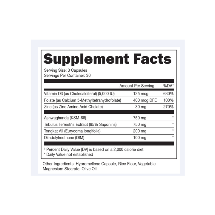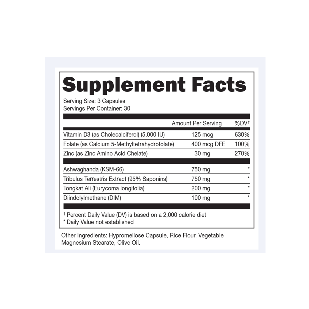 RUT Testosterone Booster uses clinically dosed ingredients to address vitamin deficiencies, manage stress hormones, and naturally support free testosterone levels.*