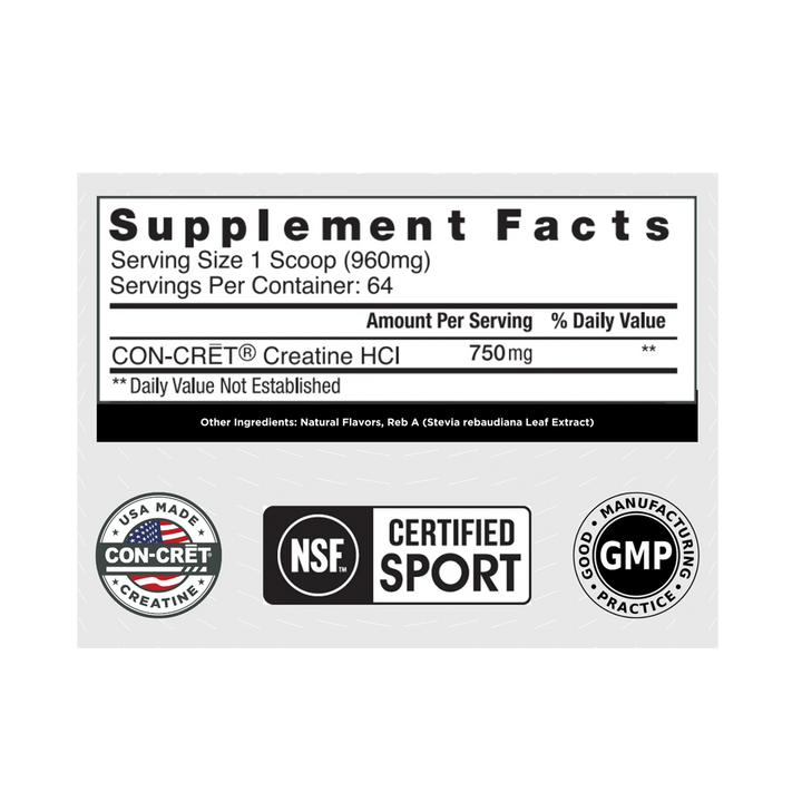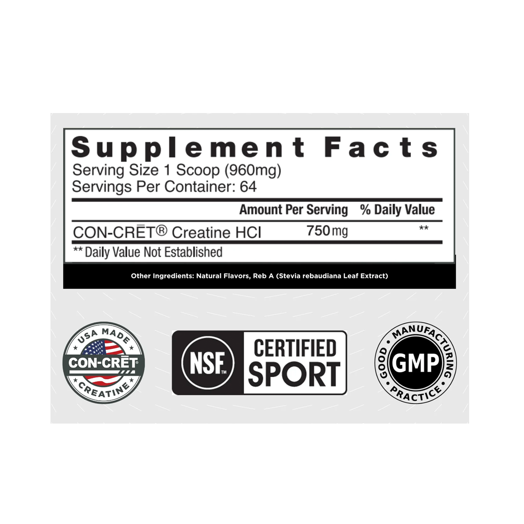 CON-CRET® Patented Creatine HCl® revolutionized the sports nutrition category. Because it is more stable, soluble and concentrated, CON-CRET® provides all the benefits of creatine at a significantly lower dose and without negative side effects*. With CON-CRET® there is no cycling and no cramping, bloating, or water retention. CON-CRET® allows Micro-Dosing® based on your body weight and workout intensity.