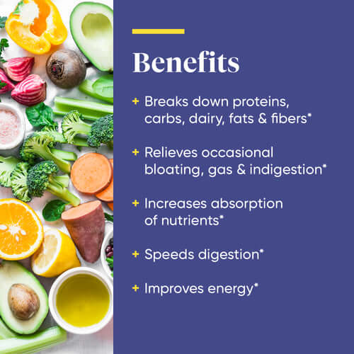 The enzymes in Digest™ strike the right balance between gentle and rigorous to break down all the parts of a typical large meal, like fat, fiber, protein and carbohydrates.* Each capsule unlocks nutrients to fuel your day and gives relief for occasional gas, bloating and indigestion.*