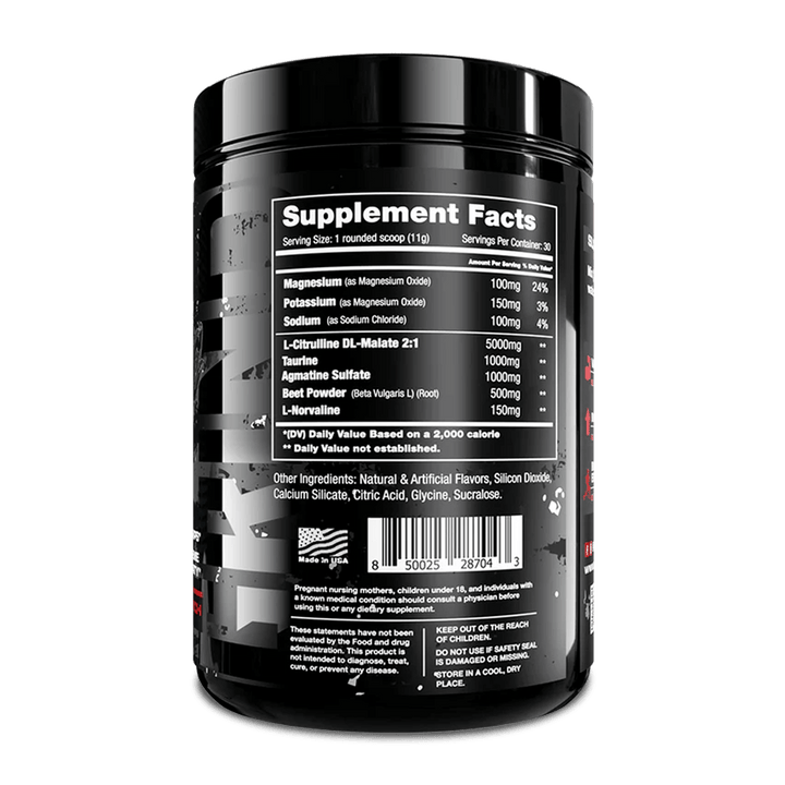Freedom Formulation's PUMPAHOLIC is a great add-on supplement to any pre-workout, aminos, or carbs. Pumpaholic can also be use independently as a standalone. This product would work well for individuals looking for a late night gym session that would not affect their sleep. Zero stimulants, all pump. 30 servings consisting of 5 grams of citrulline, 1 gram of taurine, 1 gram of agmatine sulfate, 500 milligrams of beet powder and 150 milligrams of norvaline.