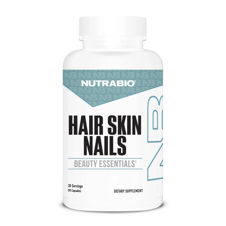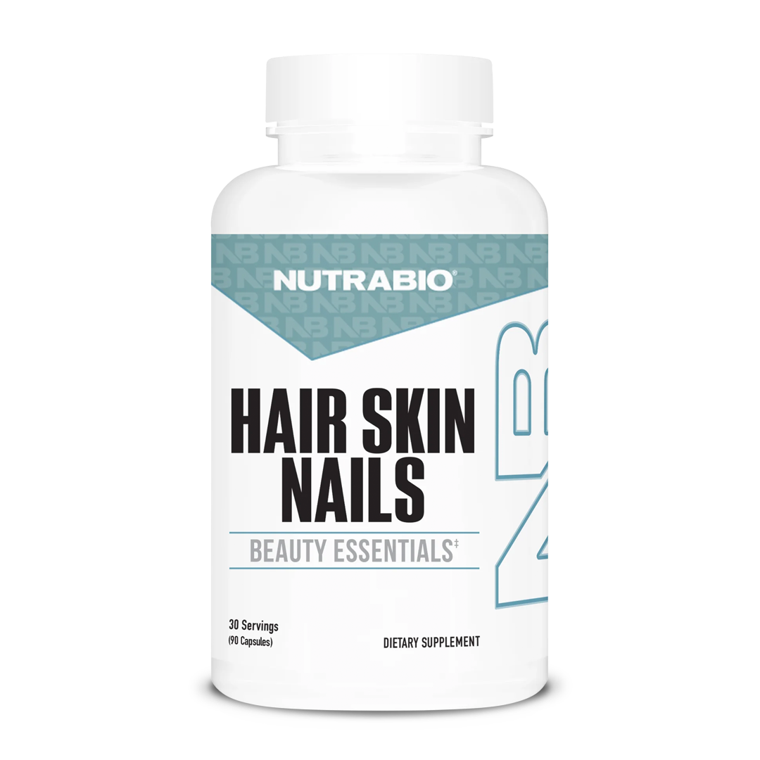 Look at NutraBio's Hair Skin Nails as beauty essentials simplified. With deep hydration, enhanced collagen support, and protection against oxidative stress, this powerful formula helps you look and feel your best — every single day.