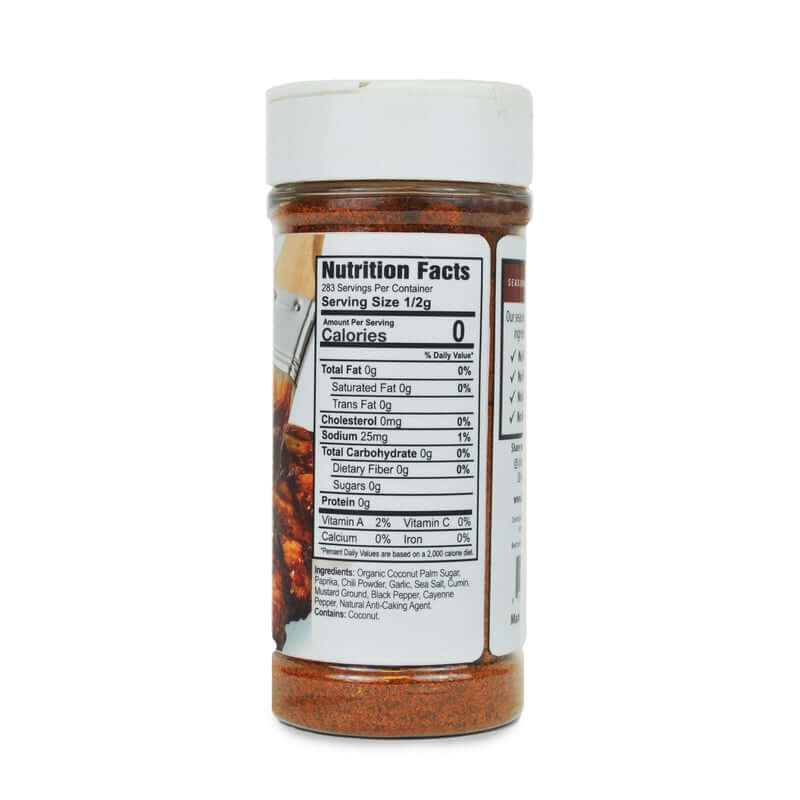 Organic Coconut Palm Sugar, Paprika, Chili Powder, Garlic, Sea Salt, Cumin, Mustard Ground, Black Pepper, Cayenne Pepper, Natural Anti-Caking Agent.