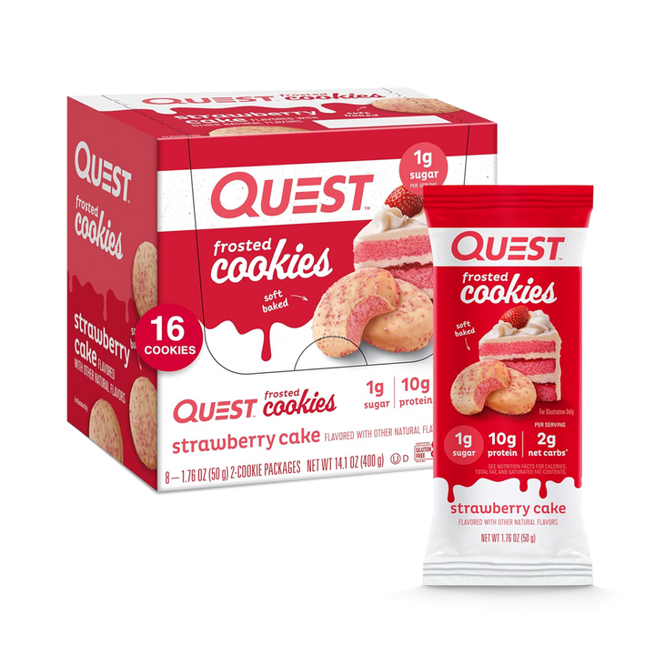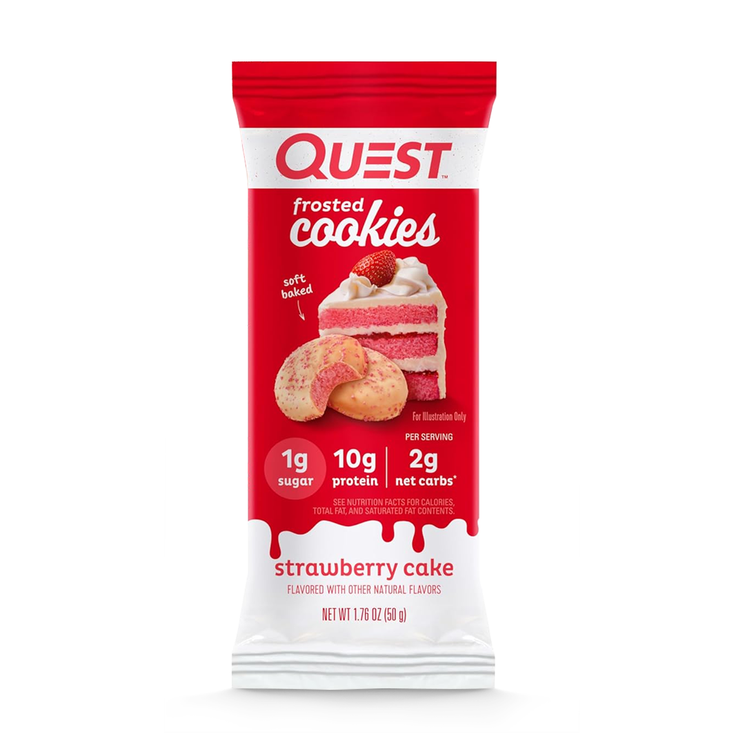 The indulgent tastes of Chocolate Cake or Birthday Cake - in a cookie. Quest Frosted Cookies satisfy your hunger with 5g of protein, and your sweet tooth, with less than 1g of sugar and 1g of net carbs.