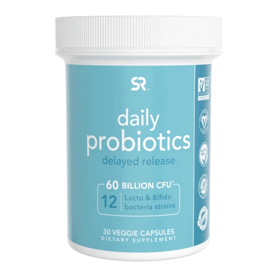 SR® Daily Probiotics provides 60 Billion CFU of Probiotics in one easy-to-take delayed release capsule. Combining 12 Lacto & Bifidobacteria Strains, SR Daily Probiotics may help replenish good bacteria.