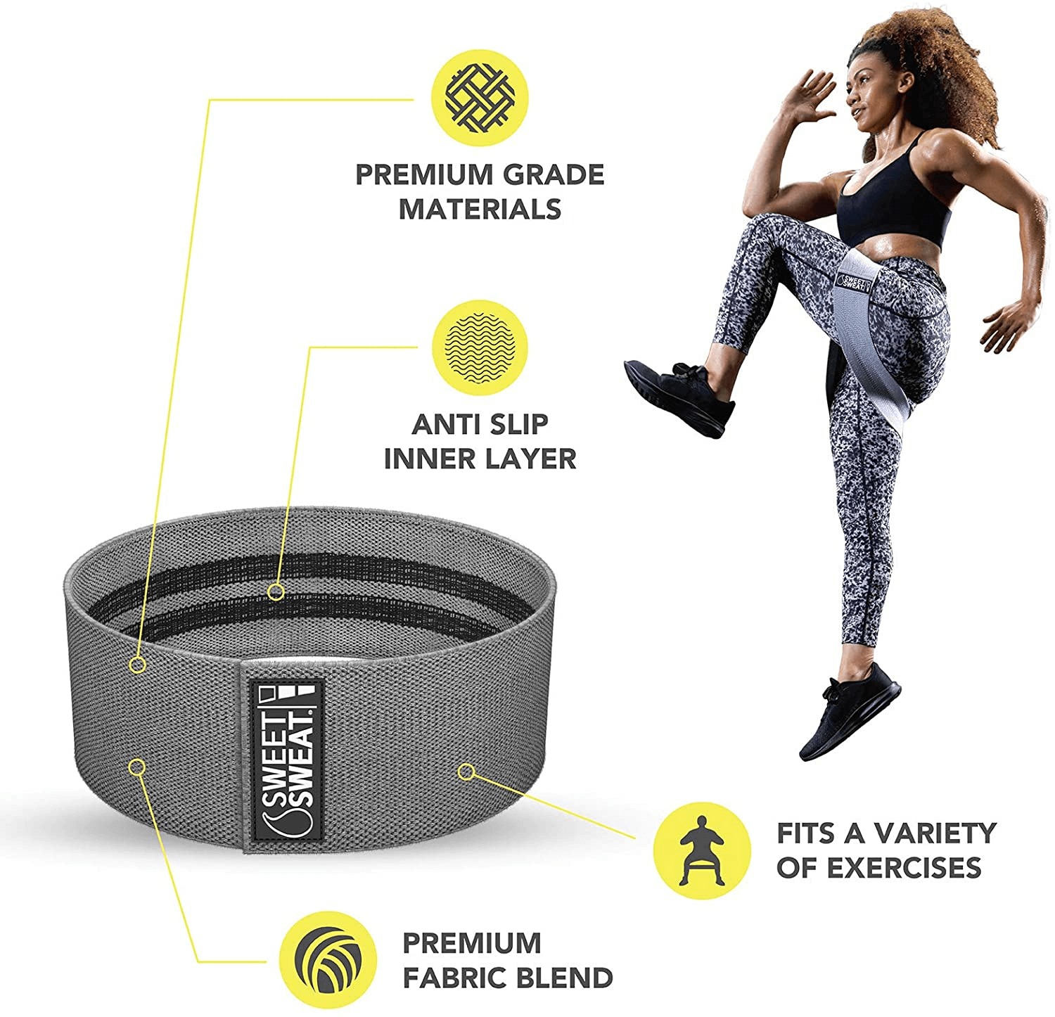 Good things come to those who sweat! Sweet Sweat Hip Bands are designed with premium-grade materials to enhance a variety of hip, leg, and glute workouts for the athlete who wants to take their resistance training to the next level. Includes 3 levels of resistance and a mesh carry bag for when you're on the go.